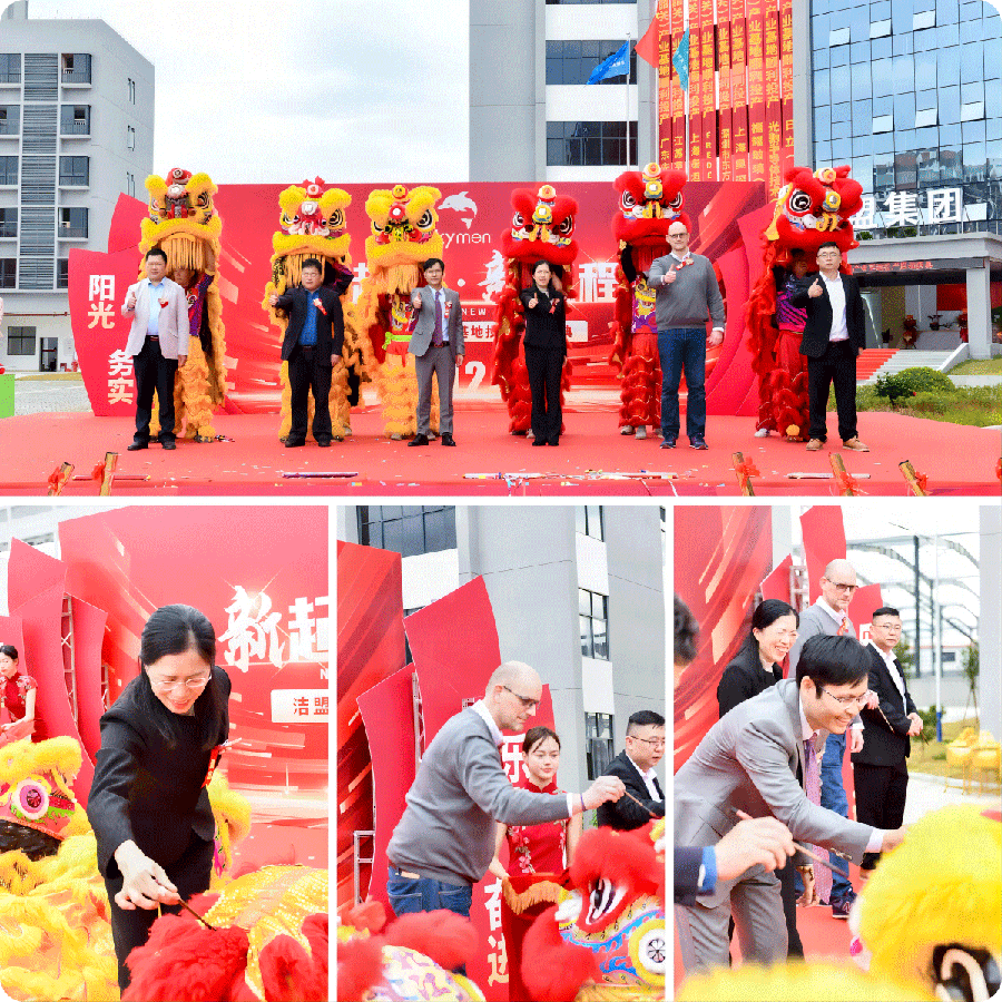 参与九州酷游官网(韶关)产业基地投产启动仪式的领导嘉宾们受邀为祥狮点睛,沉睡的祥狮被唤醒,在锣鼓声中欢腾跳跃,登高采青献祥瑞。九州酷游官网集团董事长杨善顺利接青,预示九州酷游官网集团在新的发展征程中事业兴旺,宏图大展,鹏程万里。